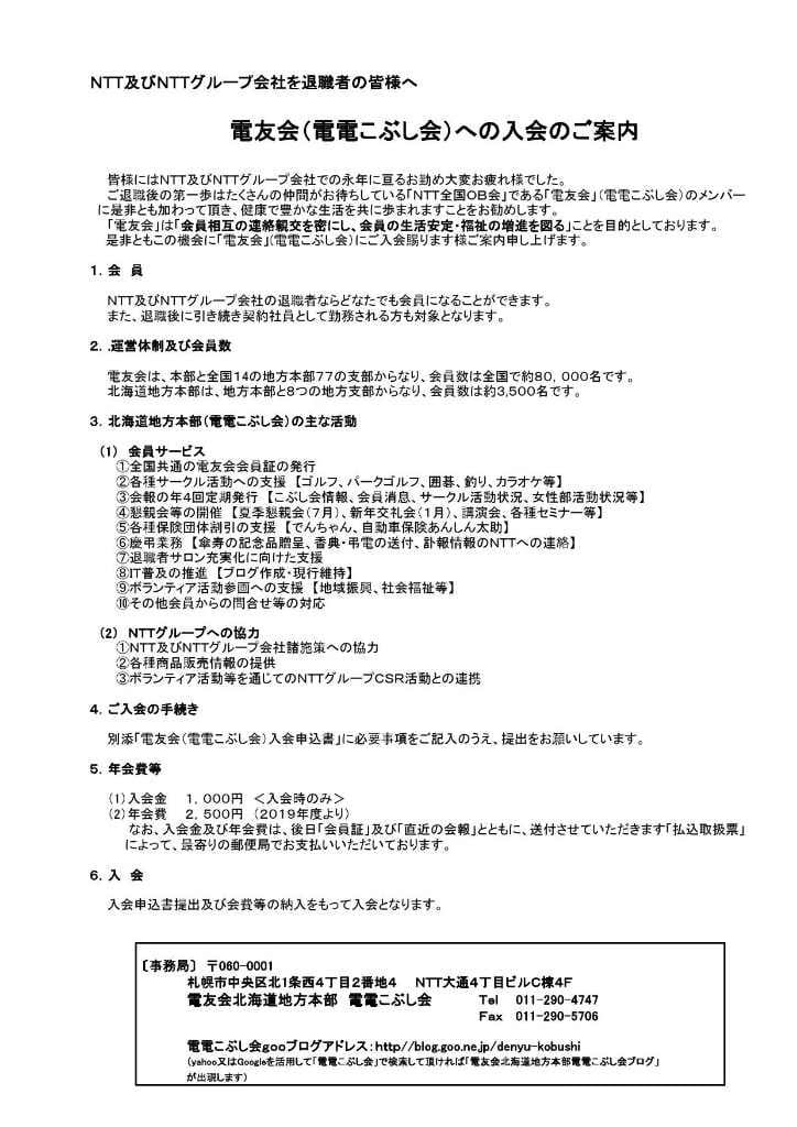 電友会(電電こぶし会)への入会のご案内 2025.08.212025.10.15 電友会(電電こぶし会)への入会のご案内 入会のご案内(退職者等用)ダウンロード ■電友会(電電こぶし会)のご案内 ダウンロード 入会申込書 (有料会員用)ダウンロード